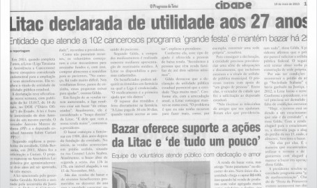 Pela brilhante e nobre iniciativa do Deputado Estadual Progressista Antonio Salim Curiati com intercessão do Vereador Marquinho de propor em âmbito estadual um Projeto de Lei no ano de 2011, para que a entidade de assistência às pessoas que sofrem dos males do câncer, LITAC, fosse declara de utilidade pública. Referido projeto, foi aprovado na Assembleia
